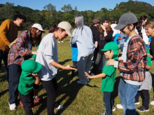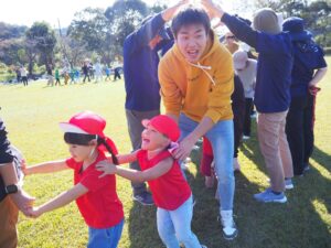 秋の風が心地よい一日となり、おうちの方と一緒に体操やゲーム、ふれあい遊びを楽しむのに最適な一日となりました。