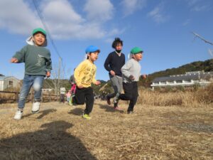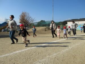 3歳児クラスのたいよう組さんは園庭を、