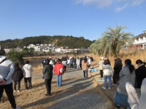 4・5歳児クラスのうみ組さん・やま組さんは近くの公園池周りの
